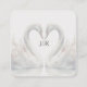 Swans adorn the front and back of these wedding RSVP enclosure cards offering a romantic aesthetic. Featuring soft shades of white and dark silver colours. Just add your wedding event details. You can also use the QR code for your RSVP, website, wedding registry, and more. Great for special occasions. Use the template to create your own romantic swan wedding QR code RSVP enclosure card.