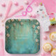 Romantic Teal Blush Pink Flowers Bridal Shower Paper Plate