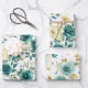 Romantic Teal Green Cream Rose Floral Wrapping Paper Sheet