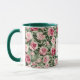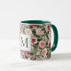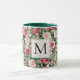 Romantic Teal Green Pink Roses Floral Monogram Mug