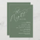 Set the tone for an unforgettable evening with our 'The Night Before' invitation card. Embrace modern elegance as you invite loved ones to join you for a memorable pre-wedding romance celebration. With sleek design and script, in forest sage green scheme, this invitation promises an evening of anticipation and joy.