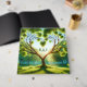 Create a modern, romantic guest book for your wedding! This wedding guest book features trees with a majestic tree in the centre along with green and heart accents. Choose your desired monograms to display in the centre. Add the date of the wedding. You can also customise the spine and back text. Use the template to create your own monogram wedding guest book.