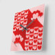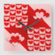 Romantic Valentine Love Hearts Red White Heart Square Wall Clock