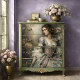 Bring timeless elegance to furniture with this romantic Victorian-inspired portrait from Découpage Boutique. Featuring a softly painted woman in an ornate floral gown surrounded by roses and muted garden tones, this artwork evokes classic beauty and refined romance.