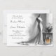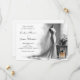 Announce your special day with timeless elegance. This romantic Save the Date card features a hand-drawn sketch of a bridal gown on a mannequin, a soft bouquet resting on a vintage table, and a delicate blush perfume bottle – the only hint of colour on this chic black and white design.