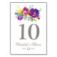 Floral Bridal Shower Table Number card featuring pretty purple and violet watercolor flowers. Personalise each number card and add them to you cart individually.