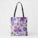 Romantic Violet Flowers and Leaves Original Art Tote Bag. Captivating play of gentle natural shapes of flowers and leaves on a translucent white surface. The surreal outlook is hand-painted in acrylic, displaying ametist, orchid, lilac, beet and iris colours against a milky white. It is a charismatic vision for a passionate viewer, an art lover who will appreciate a never-ending story behind the design. This original painting is made by artist Aleksandra Grbic Hrustic. Copyright, all rights reserved. This Original, unique, colourful and eye catching Bag is not only the bag but it is also art and the fashion statement.