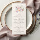 Bring timeless elegance to your wedding reception with this romantic watercolor pastel floral wedding menu card. Featuring soft blush and lavender flowers, delicate greenery, and classic typography on an ecru background, this design perfectly complements spring or garden weddings. The refined layout highlights each course beautifully, making it an ideal choice for couples who love a sophisticated yet charming floral aesthetic.