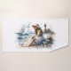 A serene coastal watercolor capturing a barefoot woman in a flowing dress seated near the sea, surrounded by seashells, a basket of yarn, and a watchful lighthouse. The scene blends soft ocean hues with delicate splashes of colour, creating a dreamy moment of reflection, wind-tossed beauty, and seaside calm. The perfect image for anyone drawn to romantic coastal living, quiet strength, and storybook simplicity. AI generated artwork.