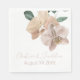 These romantic wedding napkins feature a floral design on the playing cards. The background is a simple white with watercolor orchids. A delicate bouquet of orchid flowers is picture in the top right, with the names of the couple printed below.