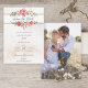Lovely clusters of elegant watercolor blush pink roses and green foliage on a subtle pastel watercolor background and custom label with gold borders. Features calligraphy "Save the Date" text graphic in custom script font (or delete and customise in the design editor) with editable text fields. Back features optional photo template.