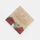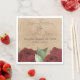 This romantic and rustic wedding napkin features a beautiful floral theme. The background is a vintage parchment paper pattern with watercolor red roses bordering the lower portion.