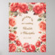 Romantic Watercolor Red Roses Wedding Welcome Poster.