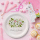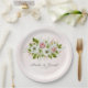 Elegant wedding paper plates design featuring watercolor pink and white roses design and customisable text.
