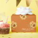 This romantic wedding wrapping paper features a floral design. The background is an elegant burnt orange colour, accented with golden watercolor sunflowers. Two delicate wild bouquets of sunflowers frame the names of the engaged or newlywed couple.