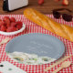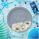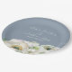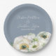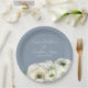 Romantic Watercolor White Ranunculus on Dusty Blue Paper Plate