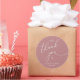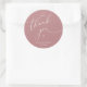 Modern Wedding minimalist Thank You Cookies Gifts Classic favors Round Sticker, in romantic script, little heart, with bride and groom signature and wedding date, dusty rose pink theme.