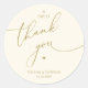 Modern Wedding minimalist Thank You Cookies Gifts Classic favors Round Sticker, in romantic script, little heart, with bride and groom signature and wedding date, yellow gold theme.