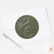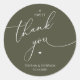 Modern Wedding minimalist Thank You Cookies Gifts Classic favors Round Sticker, in romantic script, little heart, with bride and groom signature and wedding date, olive green theme.