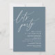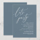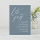 Mark the beginning of your forever with elegance using our romantic contemporary dusty blue theme wedding elopement happily ever after brunch lunch dinner party celebration invitation card, "Let's Party". Perfect for couples extending their joyous occasion, this invitation exudes sophistication with a hint of playfulness, setting the stage for a memorable event. Adorned with a timeless modern script design theme, it adds a touch of refined charm to your festivities, this invitation promises to beautifully capture your love story.