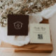 Elegant, western themed wedding website QR code card, embellished with a vintage inspired, monogram crest and classic calligraphy.
