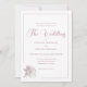 This wedding invitation is crafted in a romantic, minimalist style, ideal for celebrating your special day. The blush pink or dusty pink palette adds warmth and gentle sophistication, while subtle white accents bring a sense of clarity and elegance. The design features a delicate floral print on the back, complemented by a single, hand‑painted blossom on the front that mirrors the artwork behind it, creating a cohesive and artistic look. A calligraphy script title adds a graceful, elevated touch. As a central element of your wedding stationery, this invitation sets the tone for the entire collection with its understated beauty and floral charm. All text elements in this elegant template can be easily edited - names, date, venue, and event details.