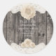 Romantic White Flower & Pearls Rustic Wood Classic Round Sticker