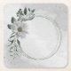 romantic white flowers and green leaves wedding square paper coaster