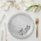 Unique wedding paper plate featuring romantic white flowers and green leaves.