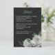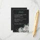 Unique wedding enclosure card featuring romantic white flowers and green leaves on black background.