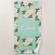 Romantic White Flowers Mint Watercolor Design Beach Towel