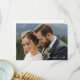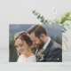 Wedding thank you card printed with your wedding photo. Double sided wedding thank you card with a photo on one side and a thank you message on the other in black fonts against a white background. Thank you card with a large wedding photo and thank you in small letters next to a white heart.
