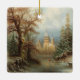 Romantic Winter Landscape with Ice Skaters Ceramic Ornament