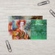 ROMANTIC WOMAN WITH PEACOCK FEATHER Green Damask Business Card