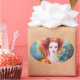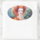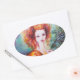 ROMANTIC WOMAN WITH SPARKLING PEACOCK FEATHER OVAL STICKER