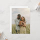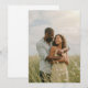 This invitation features a romantic and serene design with two individuals embracing in a field of tall grass and wildflowers. The color palette includes soft, natural tones like light blue-gray for the shirt and yellow with white floral patterns for the dress, creating a warm and inviting atmosphere. The photographic style captures realistic details and textures, emphasizing the tender connection between the subjects. Perfect for celebrating love and joy, this design evokes feelings of contentment and is ideal for weddings or engagements.