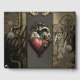 Romanticism in wheels and tubes the steampunk soul. An artfully crafted heart in the characteristic steampunk style, composed of a multitude of delicate gears that precisely interlock, giving the heart a dynamic, vibrant appearance. The heart's central core shines in an intense red, strikingly contrasting with the metallic elements. The entire composition exudes a blend of romanticism and industrial aesthetics, wonderful for fans of the steampunk genre.