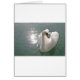 Design: Ein romantischer, schneeweisser Schwan mit Lichtsternchen neben sich auf dem grauen Wasser