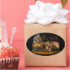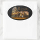 The incredible Roman Colosseum has stood for almost 2000 years. It is said that should the Coliseum fall, so shall Rome. The southern portion was partially destroyed in an earthquake. In this photograph, the imposing structure is illuminated in the black of night. This oval shaped sticker is fully customisable.