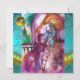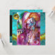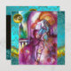 Balcony scene from Romeo and Juilet tragedy by William Shakespeare .Original contemporary watercolor painting with golden ,silver foil and iridescent colours in bright purple ,pink,green,yellow orange , teal,turquase, white .Painting by Bulgan Lumini (c).This cool and artistic card is perfect for weddings,bridal showers,anniversary parties,costumed dance balls,,romantic engagements,save the date announcements,cocktails,celebrations,anniversaries,gatherings,