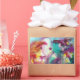 Scene from Romeo and Juilet tragedy by William Shakespeare .Original contemporary watercolor painting with golden foil and iridescent colours in bright purple ,pink,green,yellow orange , teal,turquase, white ..Painting by Bulgan Lumini (c)