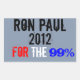 Ron Paul 2012, For The 99% Rectangular Sticker