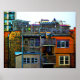 Digital image of roofdecks in Chicago. Has a posterised treatment.