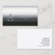 This elegant and professional roofer business card features a chrome textured background. Your monogram letters appear within an equally elegant chrome bordered circle on the lower left, while your name and title appear in simple easy to read white letters on the lower right. All the elements blend to give an elegant yet impactful impression. Perfect for administration, management, professional, classy, luxury, construction, building, trade skills themes.