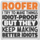 Funny Roofer Sayings "Roofer I Try To Make Things Idiot Proof But They Keep Making Better Idiots". Grab this Funny Roofer design as a funny gifts for an awesome mum, dad or friend.