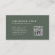 Spread the word about your roofing business with this simple dark green and white business card. A white roof logo and white text appear on a dark green background. Add your business name, contact information and other details. A QR code on the back takes customers and clients to your website.