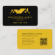 Spread the word about your roofing business with this simple, bold black and yellow business card featuring rounded corners. On the front of the card, a yellow roof logo and yellow text appear on a black background. Add your business name and contact information. On the back, the colors are reversed, with black text on a yellow background. A QR code on the back takes customers and clients to your website.