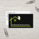 This unique bold custom business card design is created for a roofing or roof contractor business designed with a bright coloured roof graphic and roofing professional at work.