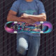 This vibrant design features a cool cat DJ at the heart of a rooftop party, set against the backdrop of a city skyline at night. Wearing headphones and confidently mixing beats, the cat embodies the fusion of urban nightlife and the laid-back cool that defines "The Cool Cat Collection." Colourful lights, dancing figures, and neon accents bring the lively party atmosphere to life, making this skateboard a must-have for music lovers, skateboard enthusiasts, and cat admirers alike.