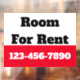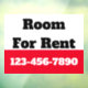 This sign is bright red, black, and white. You can edit the text to meet your needs. You can add your custom message (shown: Room For Rent) and phone number. The top is white with black text. The bottom is bright red with white text for your phone number or custom text. All text can be edited or deleted.